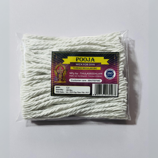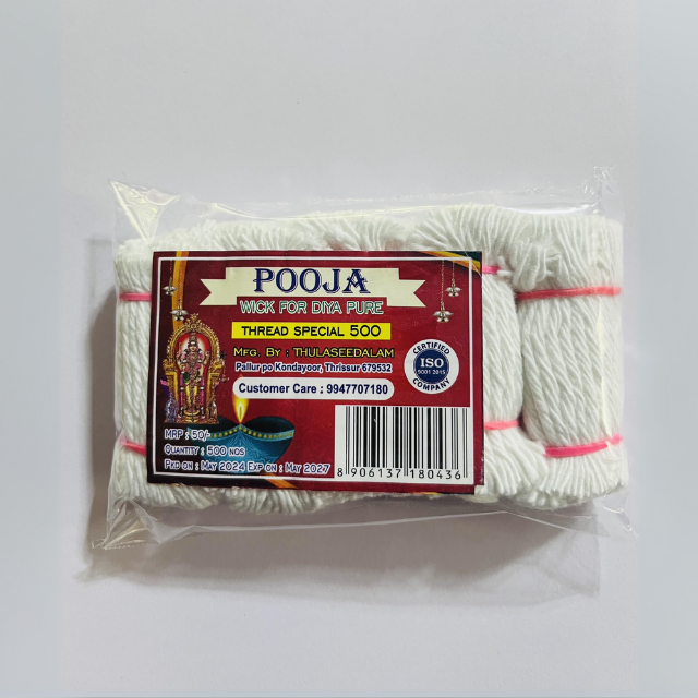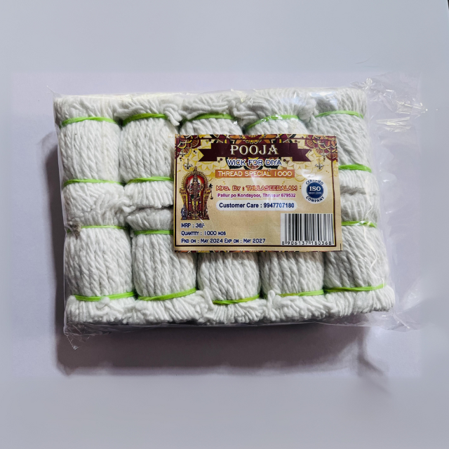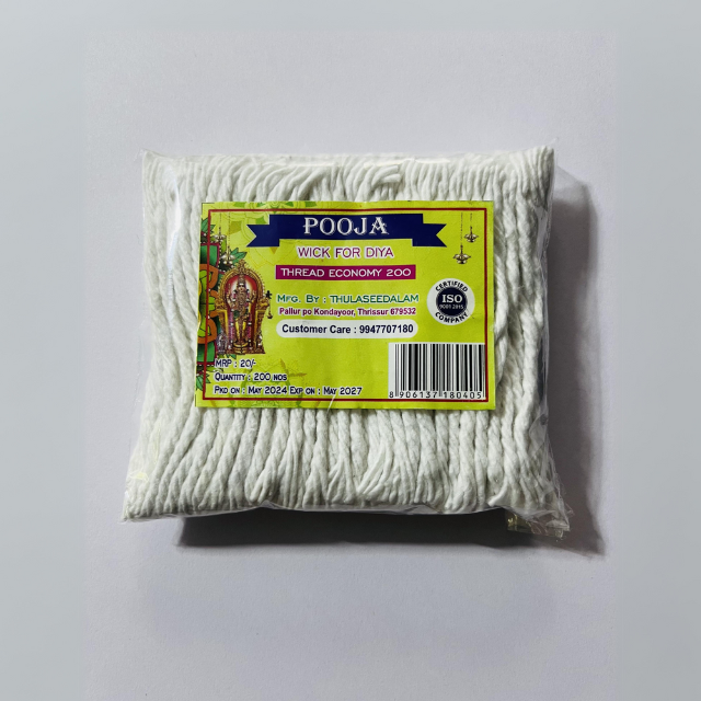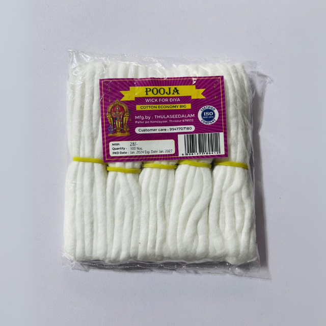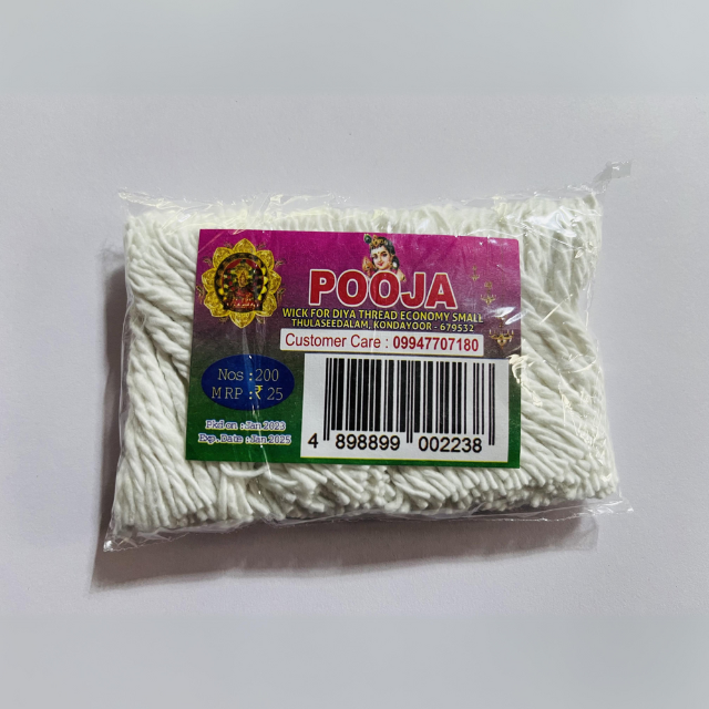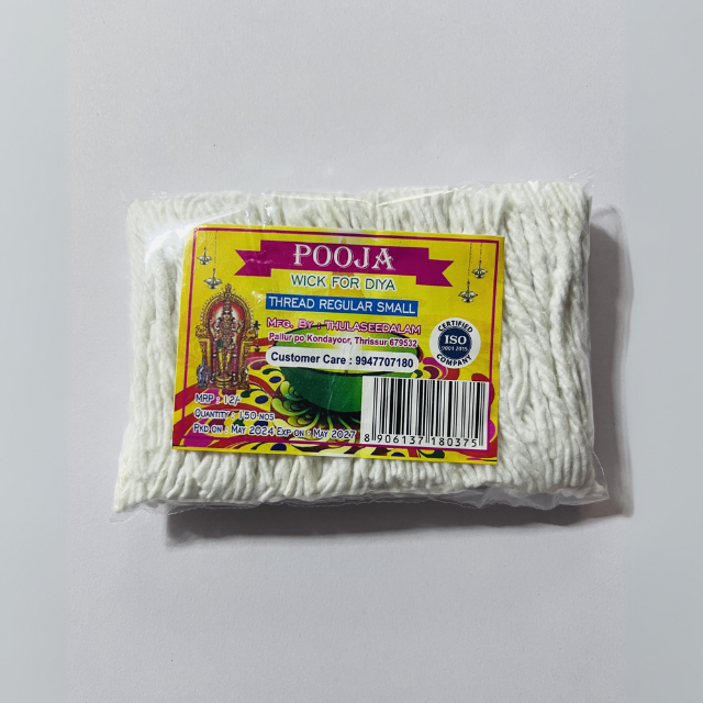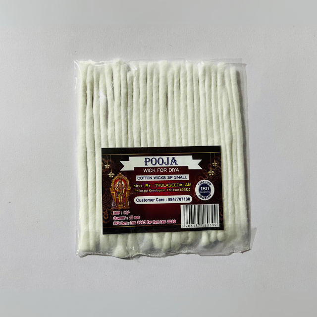 Discover our range of high-quality 'Pooja' cotton wicks, perfect for traditional oil lamps.