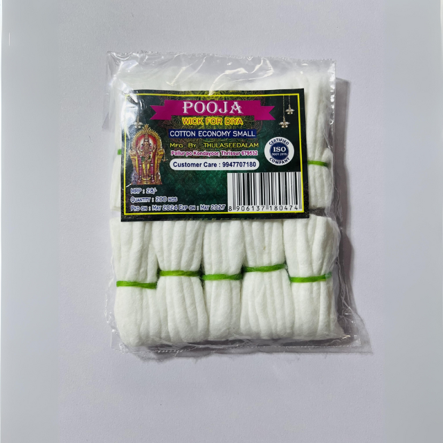 Discover our range of high-quality 'Pooja' cotton wicks, perfect for traditional oil lamps.